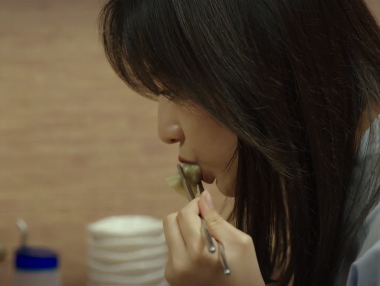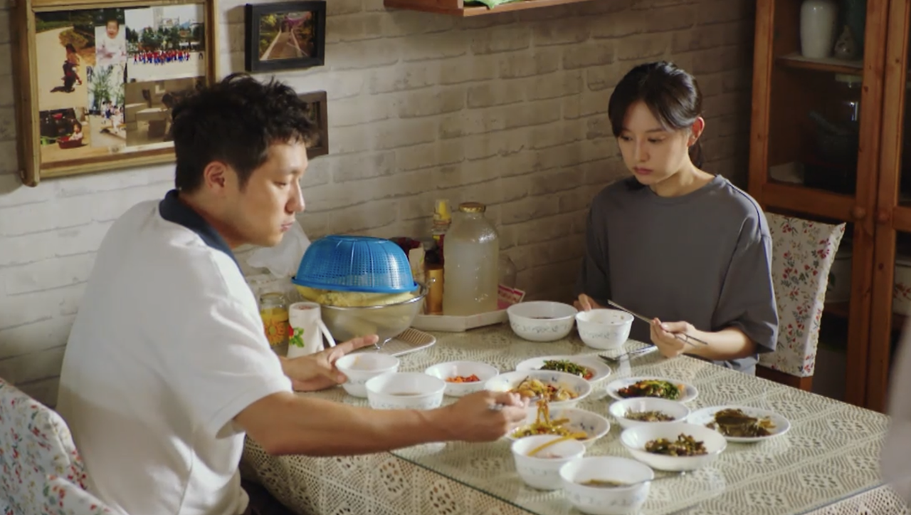 머쓱하게 함께 식사. 구씨가 고구마 줄기 반찬을 잘 먹는 것을 보고 어머니가 미정을 통해 반찬을 더 챙겨준다. 이 가족은 엄마, 아빠, 딸 할 것 없이 (+아들...) 구씨 다치지는 않았나, 안주는 먹어가며 술 먹는 건가 엄청 신경 쓰고 챙겨준다. 이런 가족의 품 근처로 불시착한 것도 어쩌면 운 이겠다.