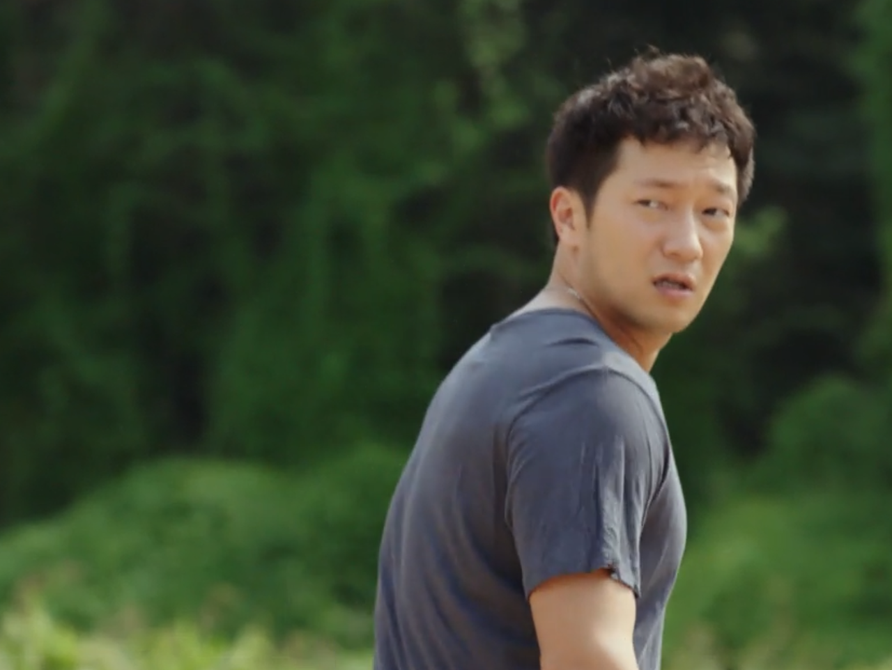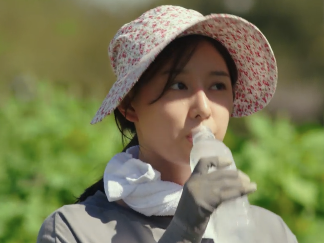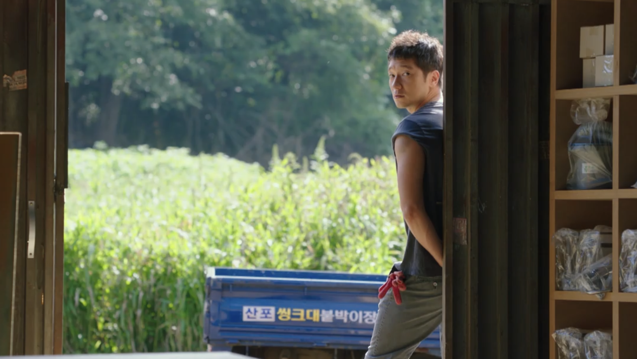 주말에 밭일을 돕는 구씨. 돈도 안 받고 염제호댁 밭일을 돕는 것은 염가네를 향한 그의 추앙(?)이라고 생각된다. 그러다 휙 하고 바람이 불어 개울 건너로 날아간 미정의 모자. 어느 쪽으로 건너갈지 실랑이가 있는 와중에 구씨는 신발을 고쳐 신고 멀리뛰기로 단번에 모자를 주워온다.
