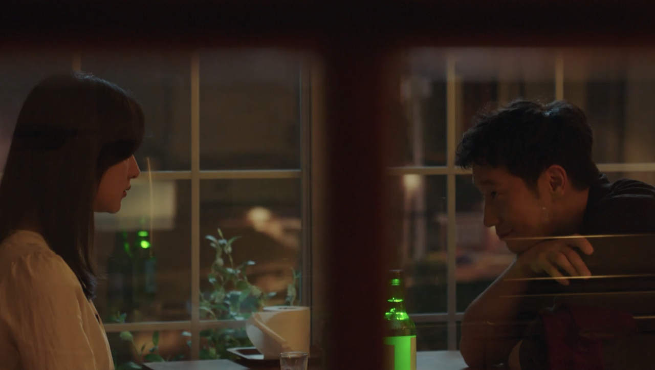 싸늘... 네가 지금까지 진심으로 나를 추앙했다면, 조금 더 나은 사람이 되어있어야지, 조금은 채워졌어야지. 이런 의미였으려나. 구씨도 계속 웃으며 (억지로) 이야기하다가 언제 추앙했냐는 말을 듣자 표정 관리를 하지 못한다. 최대한 이입하여 해석해보자면 나는 미정이 좋은데, 전 여자에 대한 덮어뒀던 죄책감이 차오른 상황이고 그래도 억지로 웃어가며 좋게 마무리하고 싶었는데 정곡을 찔려할 말을 잃은 것 같았다.
