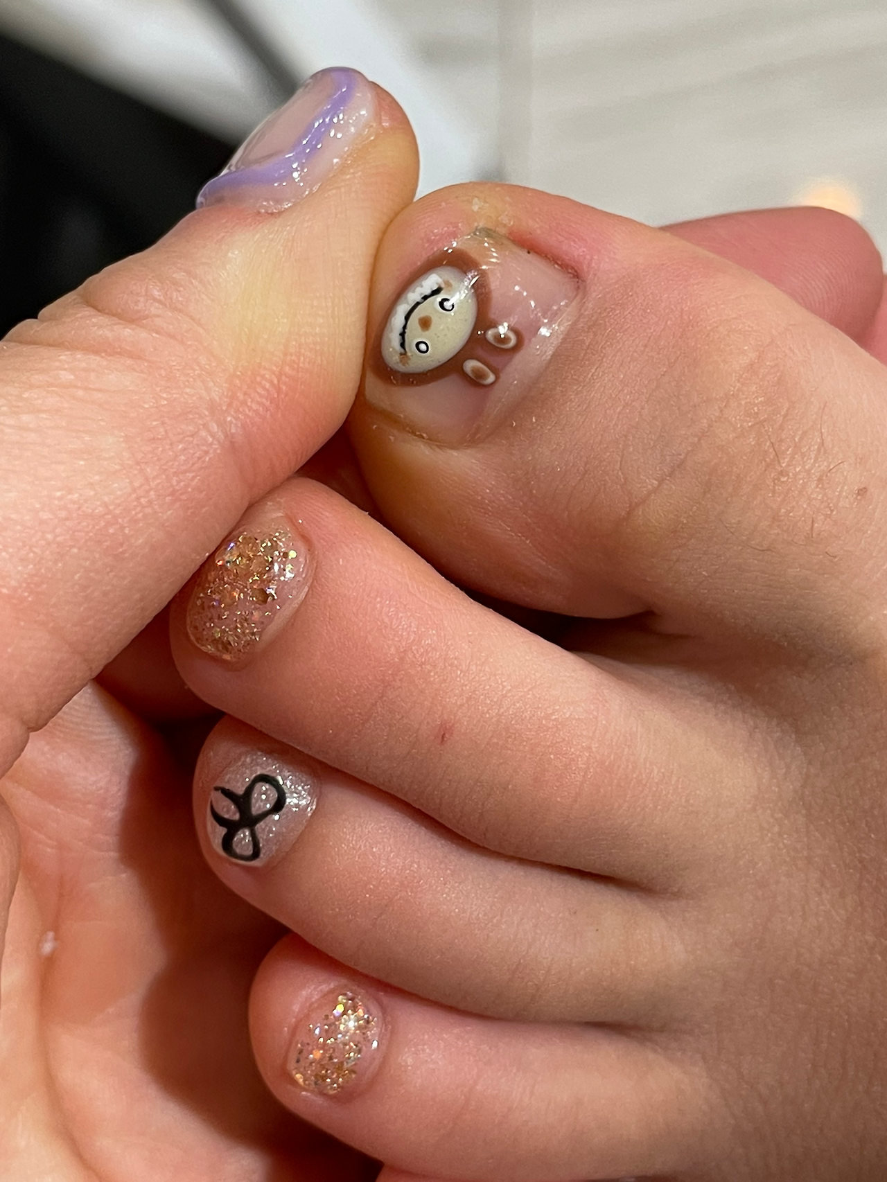 아이의 작은 발가락 위에 새겨진 라부부 캐릭터를 보며 웃음이 새어 나왔다. 단순한 미용이 아니라, 그 자체로 하나의 작은 예술을 보는 느낌이었다.