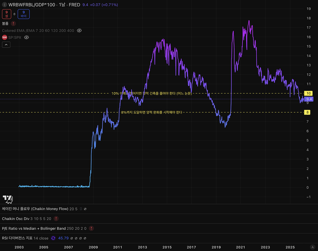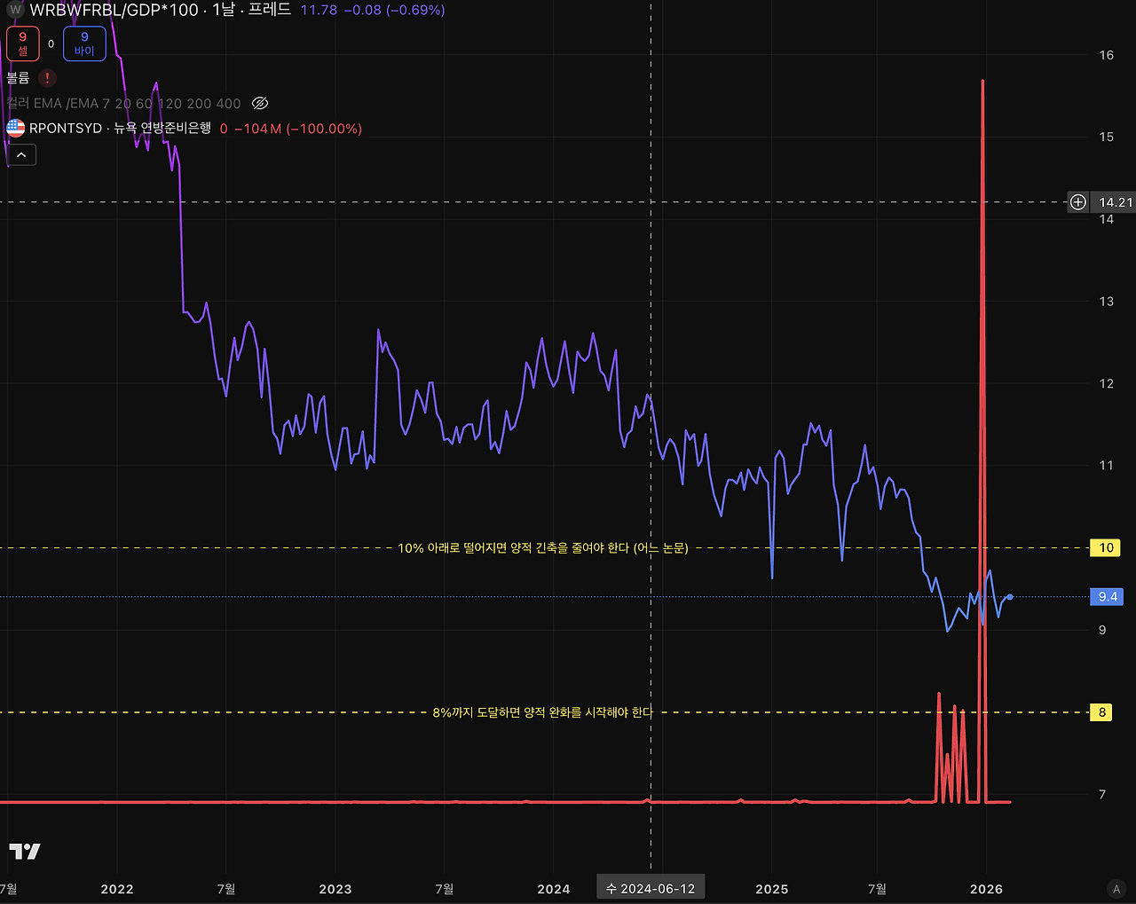 관련인들의 말을 참고하면 현재 연준은 지급준비금/GDP 비율이 8~10% 수준으로 유지하는 것이