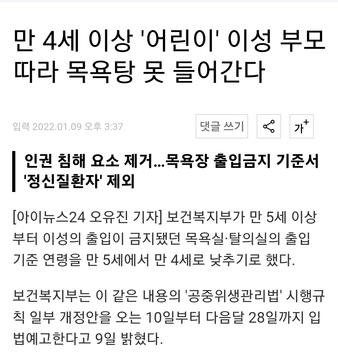 올 초, 만 4세 이상 이성 자녀의 목욕탕 출입이 금지된다는 기사를 접했다. 아니, 나 같이 어린 남자아이를 둔 한부모 엄마는 어떻게 하란 말이지?
