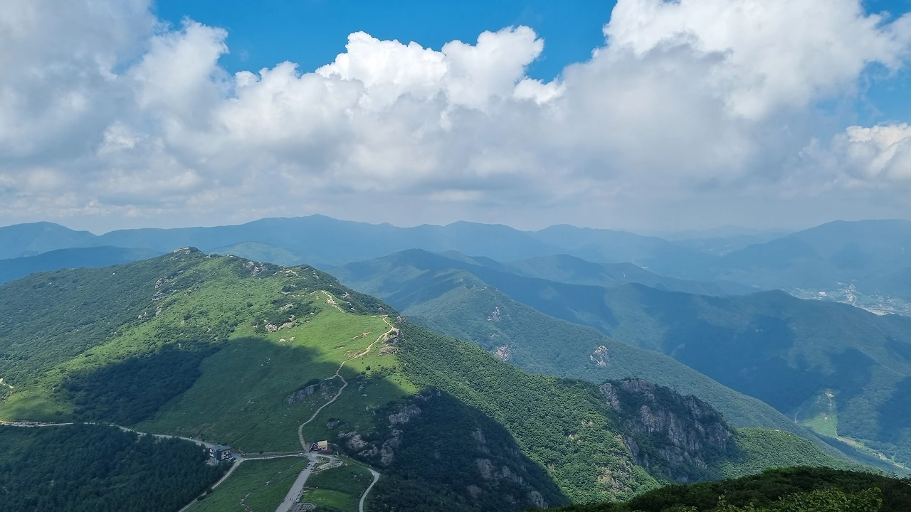 여름산은 헥헥 거리는 숨을 고르며 오를 가치가 있을 만큼 청량하고 예뻤다. 억새로 유명한 산이라 가을에만 예쁜 줄 알았는데 여름에 와 보니 입는 옷마다 멋지게 살려내는 산세가 예술이었다.(역시 사람이나 산이나 틀이 중요한 법이다.)
