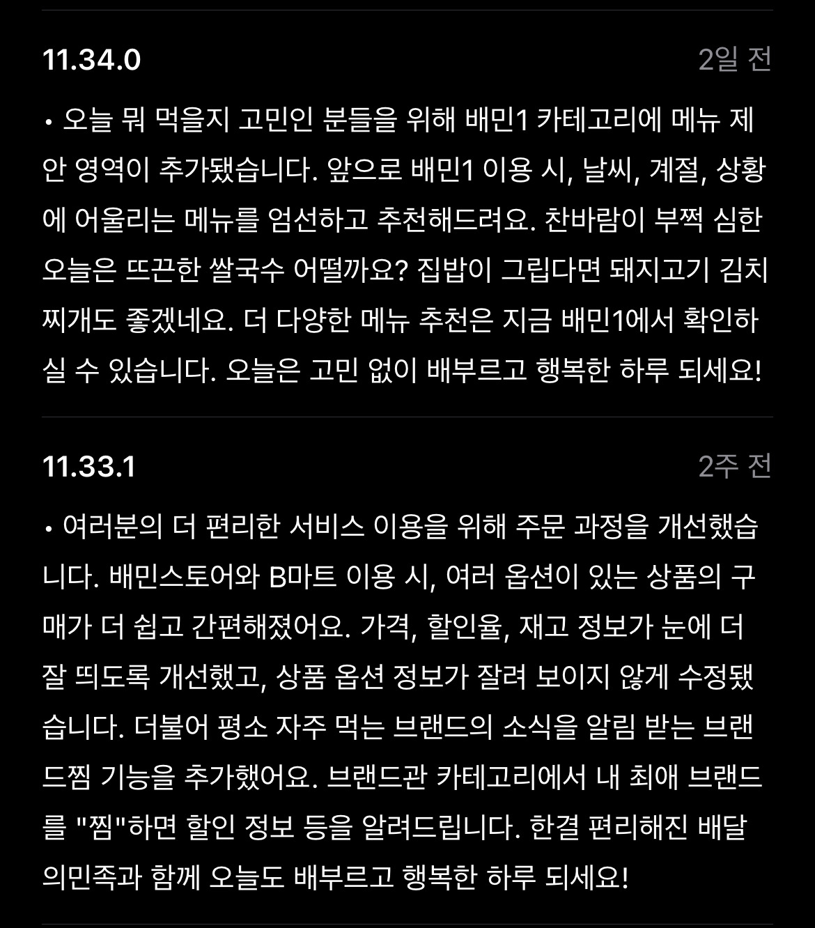 오늘부터는 앱스토어에 올라온 여러 서비스들의 릴리즈 노트 역시 눈여겨보게 될 것 같다. 좋은 서비스를 만들기 위해 피땀 흘리고 있는 전국의 많은 메이커 여러분들에게 응원의 목소리를 전하고 싶다 :)