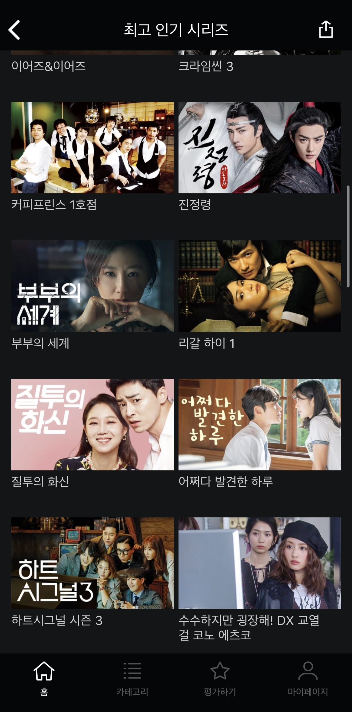 하지만 왓챠의 경우, 넷플릭스에는 없는 아시아권 드라마와 예능 프로그램들이 갖춰져 있다. 실 예로 왓챠의 <최고 인기 시리즈 탭>을 보면 한국 방영 드라마, 일본 드라마, 중국 드라마가 대부분이다.