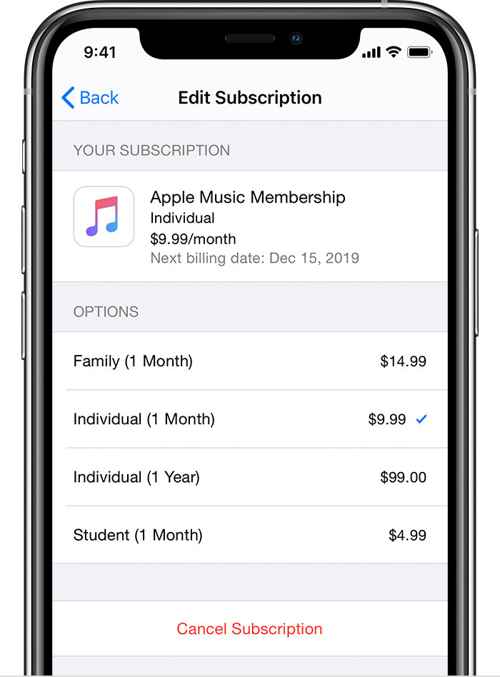 애플뮤직의 요금제는 월간 요금제, 연간 요금제, 학생 요금제, 가족 요금제로 나뉜다. 나의 경우 최대 4인이 사용 가능한 패밀리 플랜(한화 17,000원가량)의 요금제를 사용하고 있다. 월간 요금제의 경우 1인 기준 월 11,700원이 결제되는 셈인데 동일 조건의 오프라인 다운로드를 지원하는 국내 요금제 월 이용권 금액이 10,900~11,400원 정도의 금액에 포진되어 있는 것으로 보아 큰 차이는 없다.