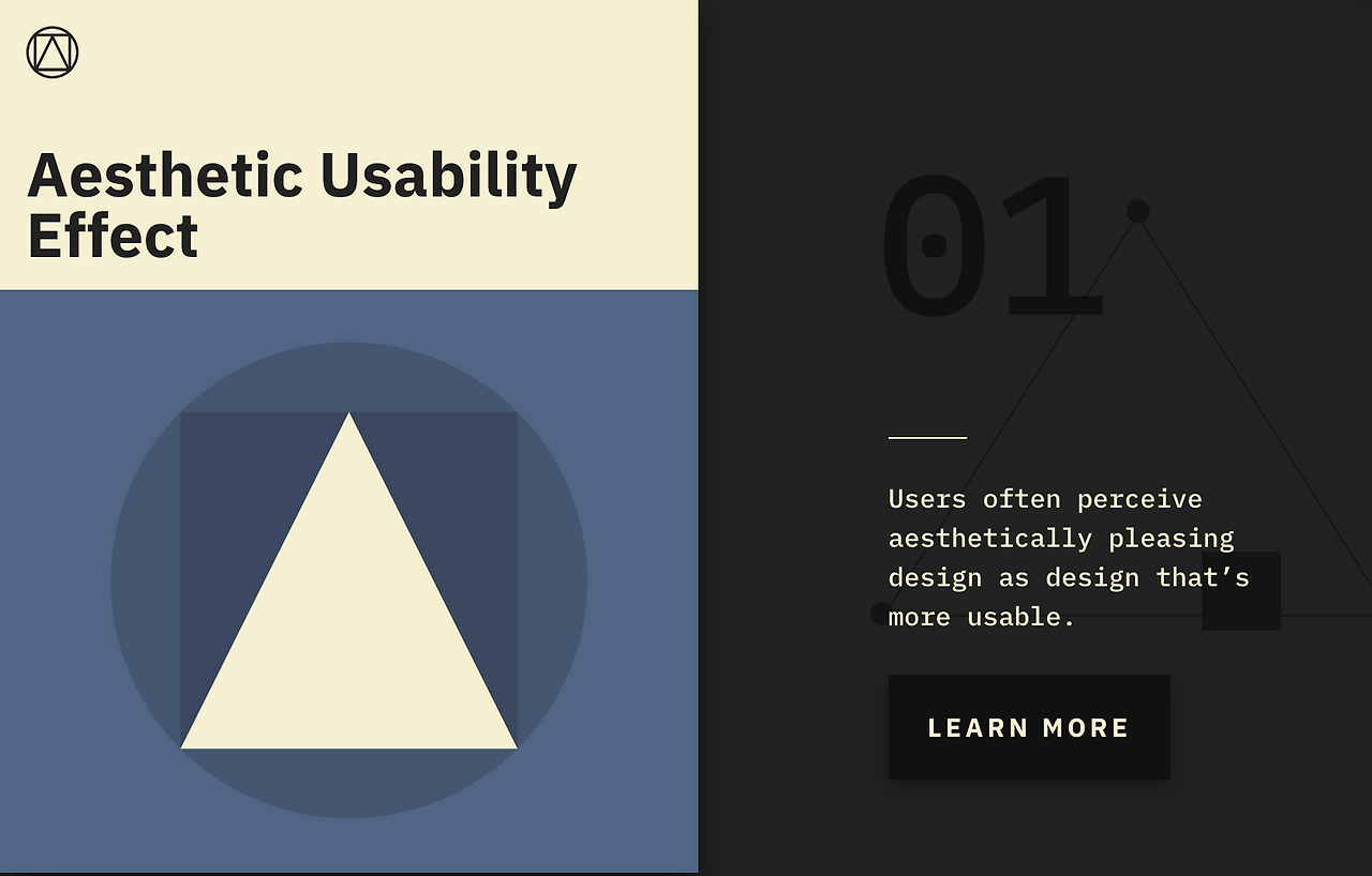 사용자는 종종 미적으로 보기 좋은, 만족스러운 디자인을 뛰어난 사용성을 가진 디자인으로 인식한다는 내용이다. 심미성이 뛰어난 디자인은 실사용 성과는 무관하게, 뇌에 긍정적인 반응을 일으켜 사용성이 뛰어나다 착각하게 한다.