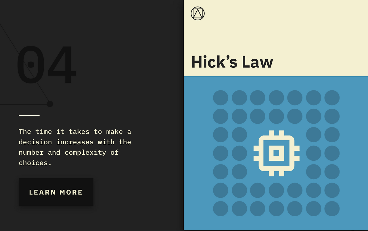 사용자가 결정을 내리는 데 걸리는 시간은 선택지의 수와 복잡성에 비례하니, 복잡한 작업을 더 작은 단계로 나누어 사용자의 선택을 단순화한다는 것.