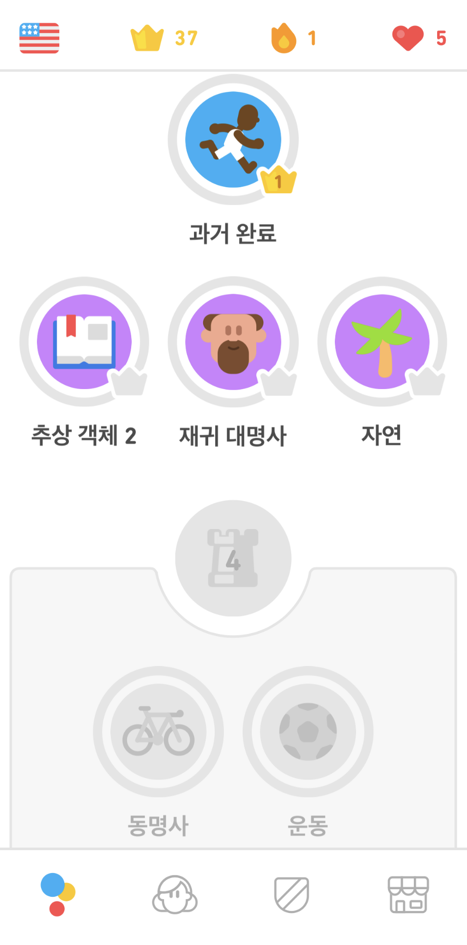 들어가기에 앞서, 듀오링고는 학습하는 언어별로 다소 상이하거나 제공되는 기능에 차이가 있었다. 영어 학습자인 경우와 한국어 학습자의 경우, 사용할 수 있는 기능의 scope가 일부 다르며 오늘 작성한 글은 UX/UI 측면의 스터디에 초점이 맞춰져 있으므로 그 부분을 감안해 주셨으면 한다.