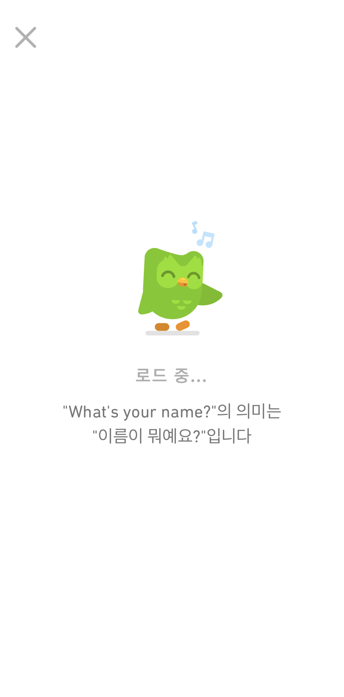먼저 로딩 화면에서 듀오링고는 현재 콘텐츠를 '로딩 중'이라고 알려주며, 언어에 관련된 간단한 TMI를 알려준다. 듀오링고의 로딩 자체가 오래 걸리는 것은 아니나, 로딩을 기다리는 와중에 딱 한 문장을 읽으면서 그 체감 시간을 더욱 줄일 수 있다. 또한, 수업 진도도 상단의 상태바를 통해 알려준다. 초반에는 녹색으로 시작해서, 뒤로 갈수록 빨간색으로 변하는, 이 상태바를 보고 공부를 그만하고 싶어도 조금 더 힘을 내서 학습을 끝낼 수 있다. 게다가 중간중간 응원 메시지를 줘서 계속해서 수업을 이어나갈 수 있도록 한다.
