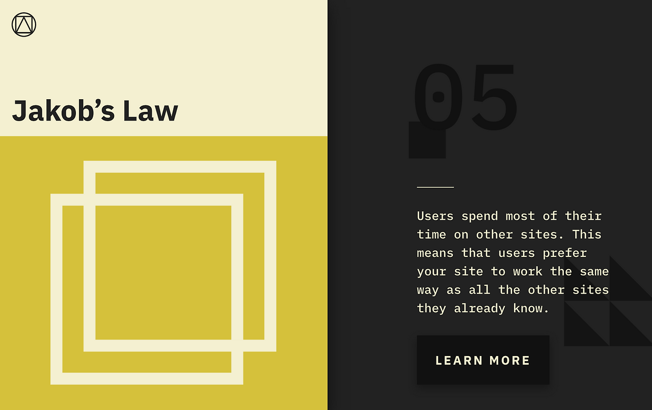 사용자는 이전에 사용했던 익숙한 제품을 통해서 채운 사용자 경험을 다른 제품에게 기대하게 되며, 기존의 멘털 모델을 활용하여 서비스를 설계할 경우 사용자의 적응도를 높이고 우수한 사용 경험을 끌어낼 수 있다는 내용의 법칙이다.