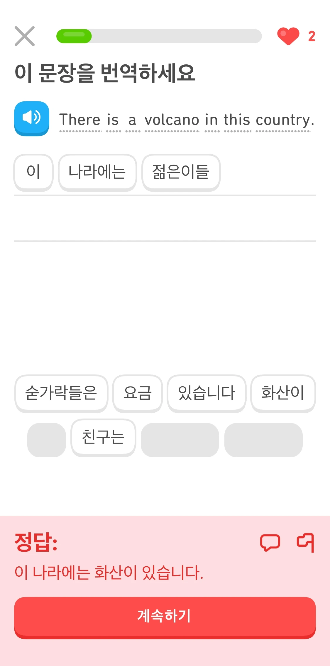 하트 충전과 플러스 요금제 결제 유도로 수익을 내고 있는 부분은 이해가 가지만, 문제를 하나씩 틀릴 때마다 하트를 차감하는 건 다소 지나치다는 느낌을 받았다. 문제를 반복해서 자주 틀리는 유저의 경우, 외국어 사용이 능숙한 유저에 비해 학습 진행 속도가 필연적으로 더뎌질 수밖에 없기 때문.