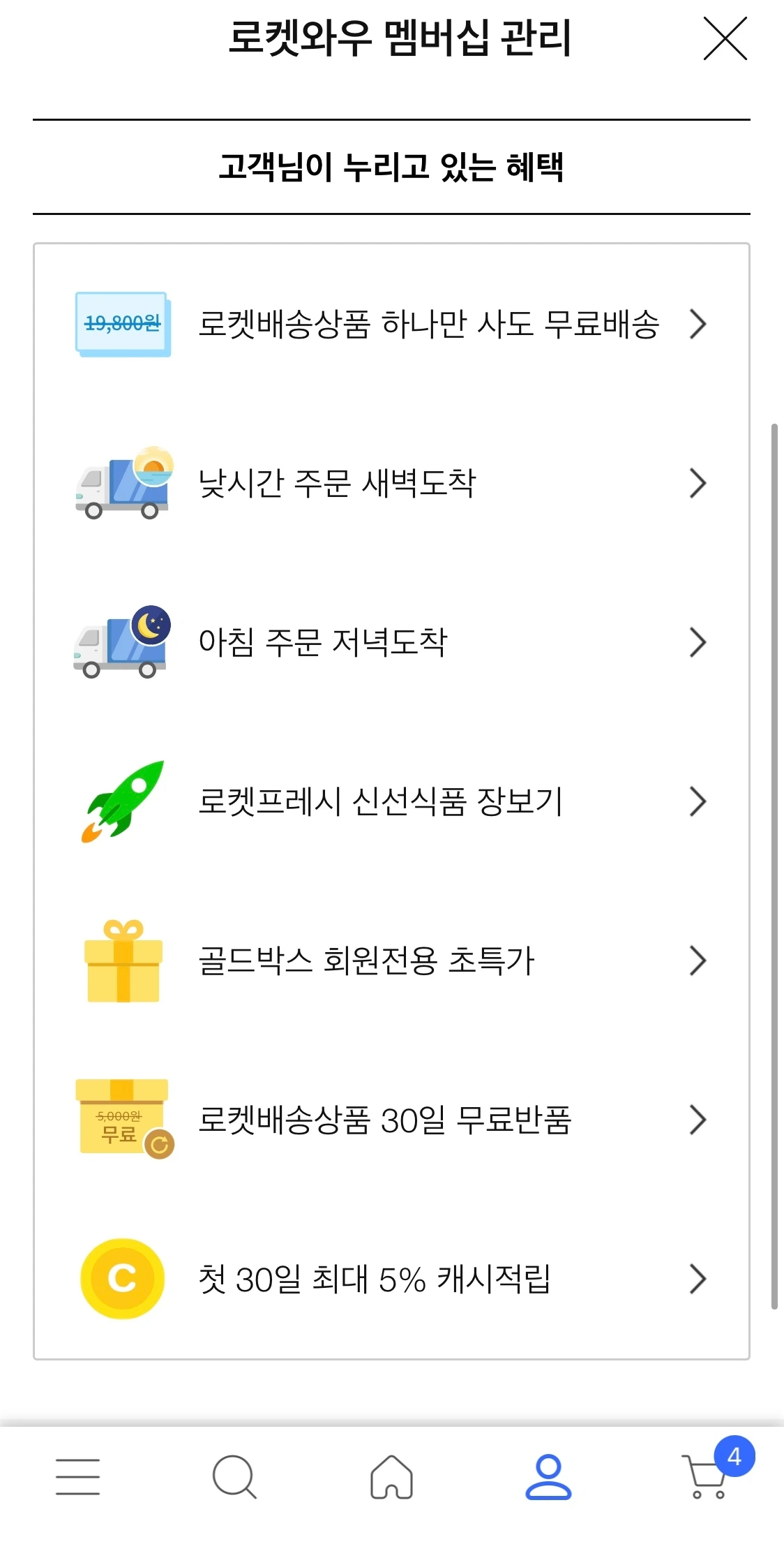 1) 쇼핑 - 쿠팡 로켓와우(월 이용요금 2900원)