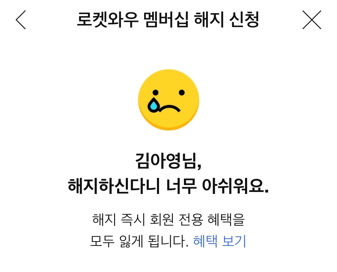 2단계 : '해지 즉시 회원 전용 혜택을 모두 잃게 됩니다.'