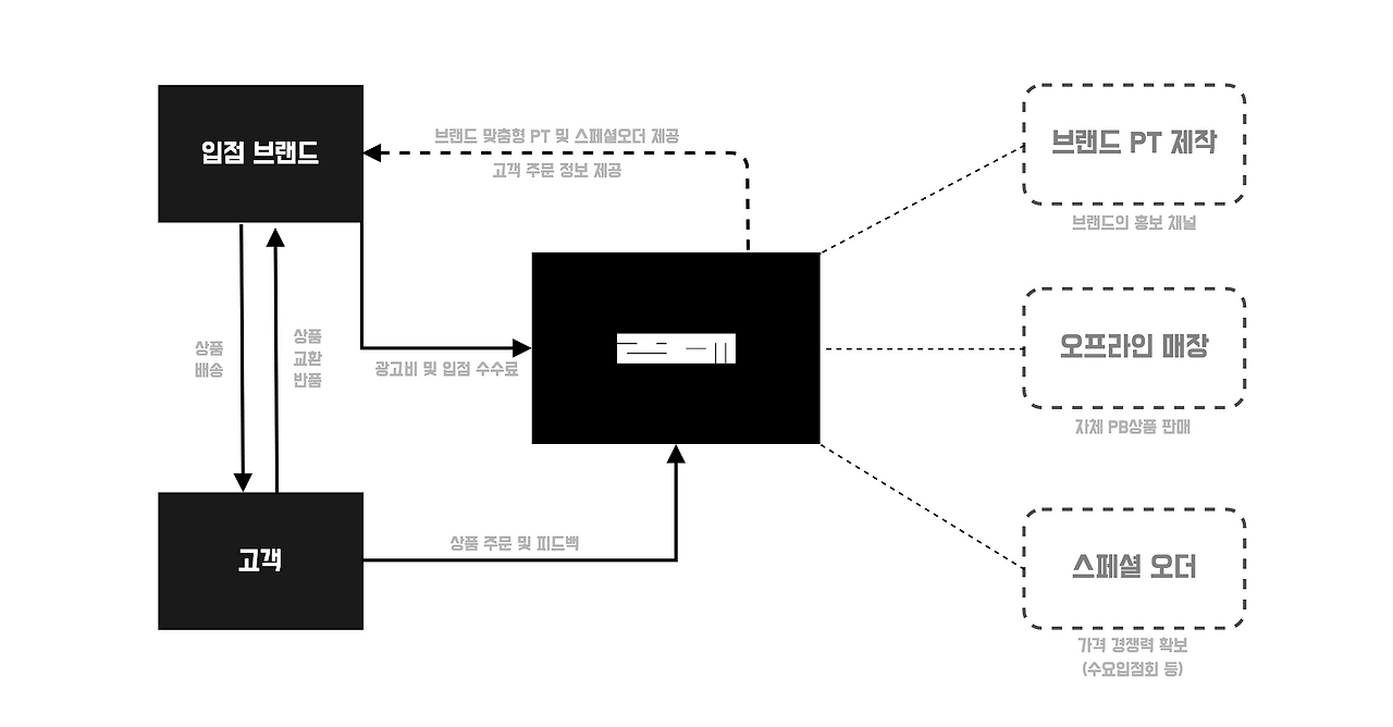 1) 자체 PB상품의 판매를 위해 눈에 잘 띄는 영역에 소위 '매대'를 설치