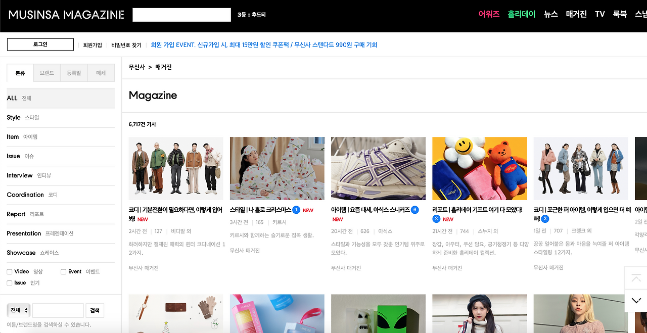또한 콘텐츠 역량의 측면에서 바라봐도 29CM에겐 상당히 위협적인 상대다. 무신사는 웹진 '무신사매거진'을 통해 다양한 패션 소식과 트렌드를 독자들에게 전달하고 있다. 이는 콘텐츠커머스 29CM의 미디어콘텐츠와 29 Culture Calender(본문 아래서 소개 예정)와도 상당히 결이 비슷하다. 그렇다면 오프라인 시장에서는 어떨까? 29CM에도 오프라인 스토어가 있듯이, 무신사 역시 '무신사 테라스'라는 매장을 열어 고객들이 오프라인에서도 무신사의 감성을 느낄 수 있도록 특별한 공간을 마련했다.