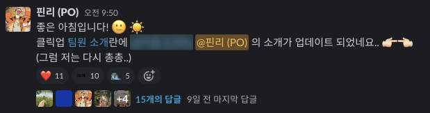 앞서 말했던 '자긍심'을 갖기 위해서는 '최선'이라는 전제가 필요하다. 과정에서 다양성을 잃지 않으며, 함께 일하는 사람들과 유의미한 가치들을 많이 만들어내고 싶다는 게 현재의 욕심이다. 인프런은 닉네임을 사용하고 있어서 이름 대신 닉네임을 부른다. 그리고 그 닉네임이 꼭 영어일 필요는 없다.