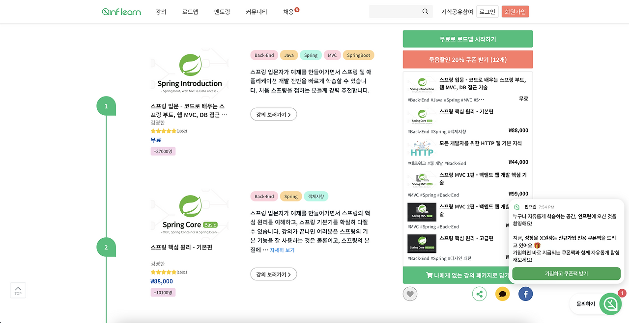1) 하나의 로드맵은 다양한 난이도의 강의로 구성되고,