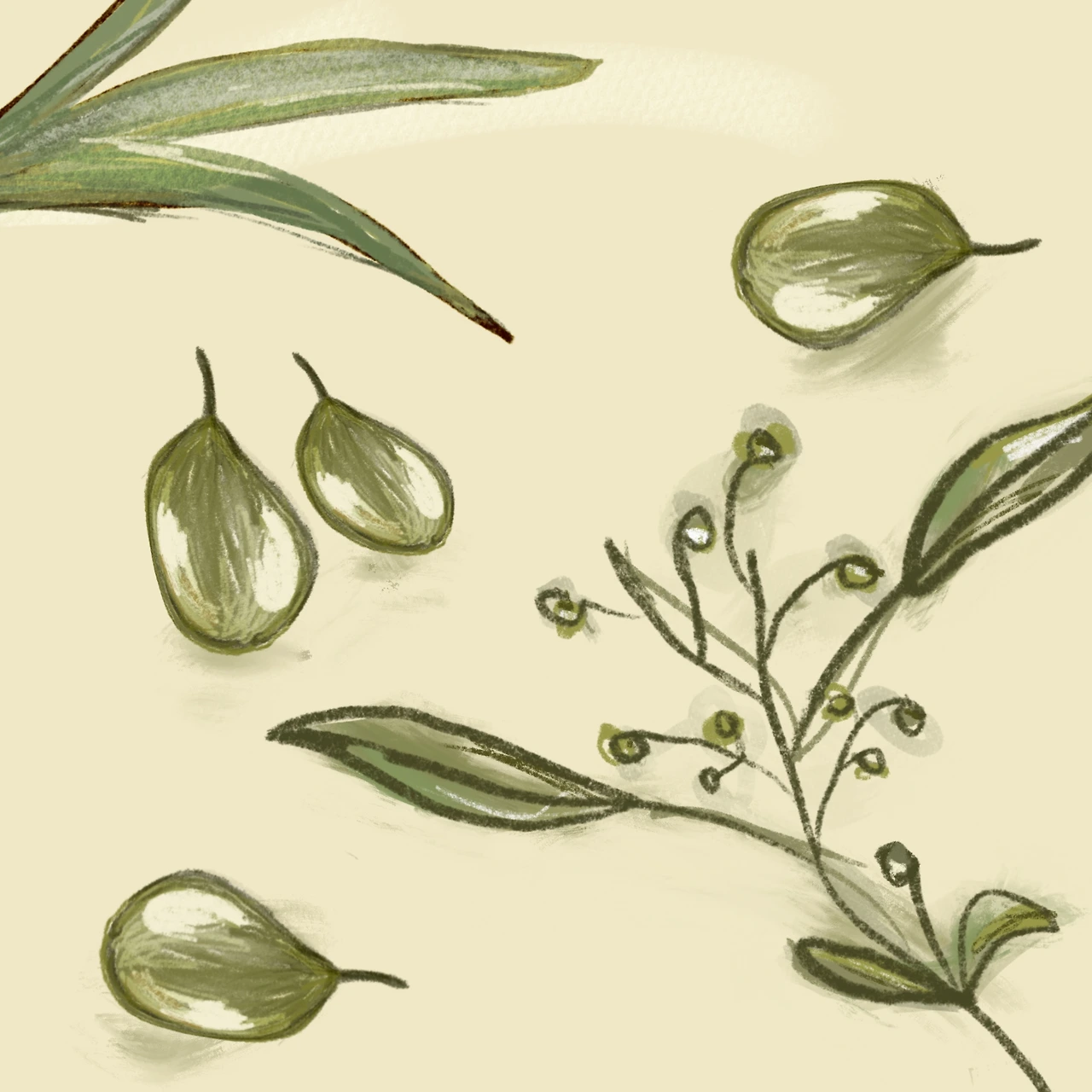 그린 올리브 네 알.