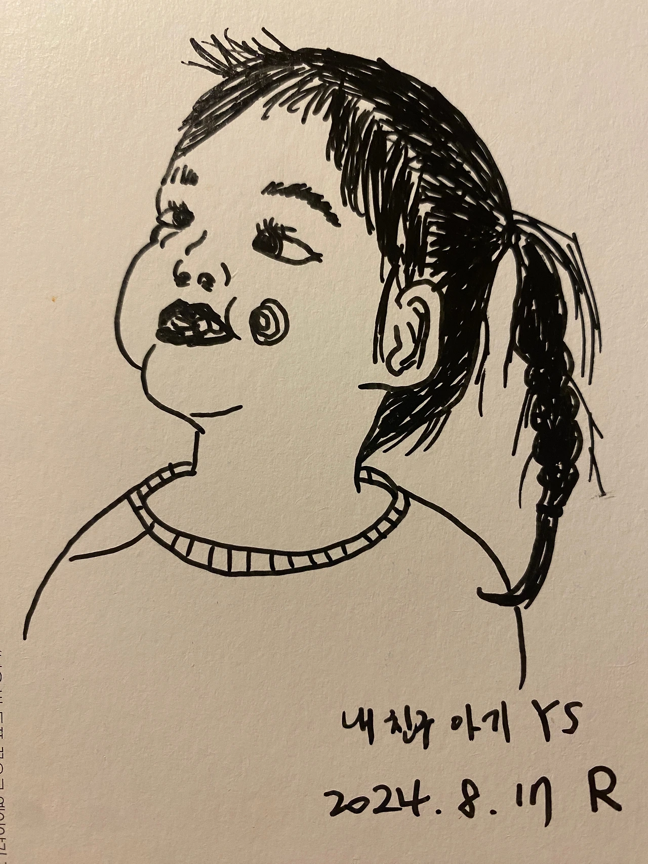 그렇게 사진을 보다가 일본 사진집 <미라이짱>이 생각났다. 사진작가가 친구 딸이 너무 귀여워 1년 동안 기록한 사진집인데 10년 전에 봤던 기억까지 거슬러 올라가서 그 아기의 최근 근황까지 검색해서 보았다. 이 무슨 의식의 흐름인가... 도망간 나의 집중력을 다시 잡고 이렇게 된 김에 친구 아기를 그려보기로 했다.
