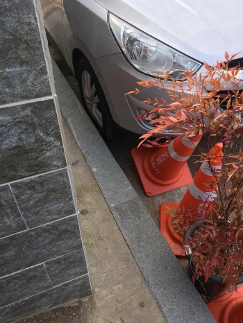 소도시 골목도 주차전쟁은 피할 수 없나보다. 골목거리와 맞닿아있는 유리문이 길게 하나, 작게 하나 있는데 작은 문은 정문이라 차량이 어지간하면 없지만 긴 문 쪽은 언제나 임시주차를 하려는 사람으로 인기 스팟이다. 오픈 초반에는 '그래, 굳이 일일이 주차하지 말라고 전화하기도 귀찮고, 정문만 보이면 되겠거니' 생각했다가 '어랏, 이건 좀 아닌데' 하는 생각이 들었다. 왜냐하면 차량문을 열고 닫을 때마다 가게 유리창이 덜컹 흔들리는 것이다. 쾅-쾅- 차량문을 여닫는 소리를 하루에 수십, 수백번 듣는 것도 별로였고. 또한 유리창에 애써 붙여놓은 포스터도 차에 가려 보이지도 않고... 이래저래 가게 매니저로써 주차된 차량이 불편해지기 시작했다. 근처 주차장이 없는 것도 아니다. 많다. 가게에서 우측으로 10m 정도 가면 넓은 공영주차장이 있고 직선 방향 30m로도 무료 주차장이 있고... 그 10m, 30m 가기 귀찮아 영업 중인 가게 앞에 차를 대는 것이다. 그래서 주차금지 콘을 시청에서 얻어 표시라도 해두자 싶었다. 콘 3개와 가게 왼쪽거리에 있는 화분 하나를 갖고와 고정시켰다. 맞은편 식당 사장님은 잘했다고 하고, 대각선에 차 가지고 오는 손님이 많은 가게 사장님은 내가 놓은 주차금지콘이 마음에 안 드는 눈치였다. 어쨌든 이후로도 아예 안 대는 건 아니지만 확실히 처음보다는 줄었다. 콘이 종종 타이어에 찌그러지기도 하지만...(불쌍한 콘 ㅠㅠ)