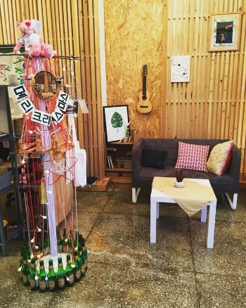 나는 무슨무슨 데이를 개인적으로 챙기거나 기억하는(고 싶은) 사람은 아니지만 가게 매니저로써는 연말을 맞아 뭔가 해야 되지 않을까 하는 고민을 했다. 그래서 뭔가 만들어보자 싶어 고향집에서 안 쓰는 옷걸이를 활용해 트리를 만들었다.