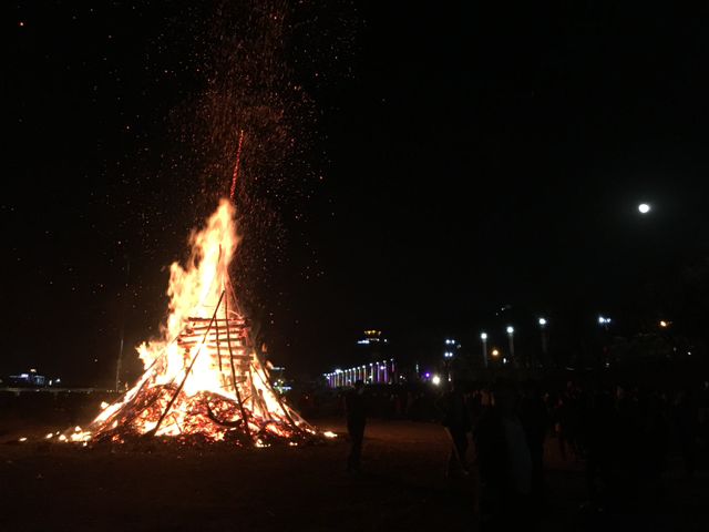 요천로에서 정월대보름 행사로 거대한 달집을 태운다고 하길래 지인과 연을 사고 종이에 소원을 적는 등 만반의 준비를 했다. 저녁 8시가 넘어가자 사람들은 달집 주변으로 몰렸고 불길은 삽시간에 뜨거워졌다. 가까이에 갈 수 없어 작은 돌에 소원을 적은 종이를 감아 불 속으로 던졌다. 연은 바람이 전혀 불지 않아 날리는 시늉만 했지만 ;;