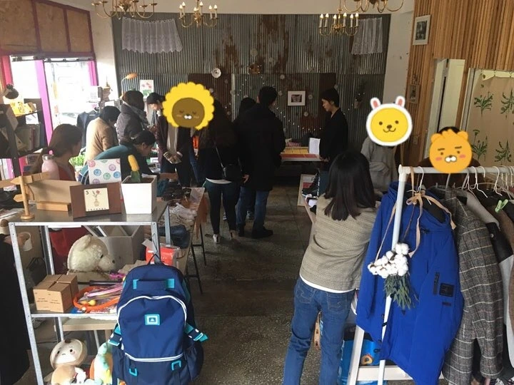 지난 겨울맞이 때 이후 두번째 벼룩시장을 열었다. 열기 일주일 전까지도 셀러 모집이 몇 명 안되어 취소해야 하나 발동동 거릴까 말까 했는데 다행히 신청자가 늘어 무사히 열 수 있었다. 홀 뿐만 아니라 가게 문 앞, 안쪽 공간까지 세팅해야 할 정도 다양한 물건과 서비스가 풍성했다. 수제 된장, 타로와 부적, 인도 마사지, 사진, 특히 의류와 신발의 양이 어마어마하게 많았다. 아마 그렇기에(?) '오늘 뭐 입지' 고민을 계속 하는 게 아닐까 하는 생각이 들기도 0_0 옷은 그냥 섬유가 아니라 동향을 따라가는 것이니까. 아무튼 와글와글했던 2월의 첫날을 잇는 3월의 둘째날이었다. 무엇보다 반가운 손님들이 놀러와준 것이 참 좋았다.