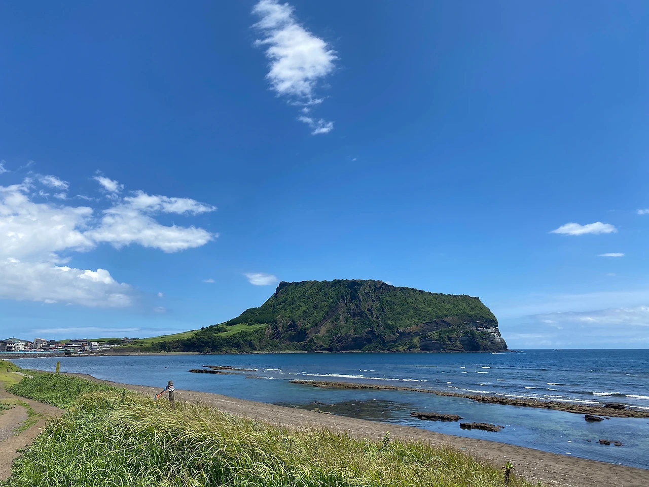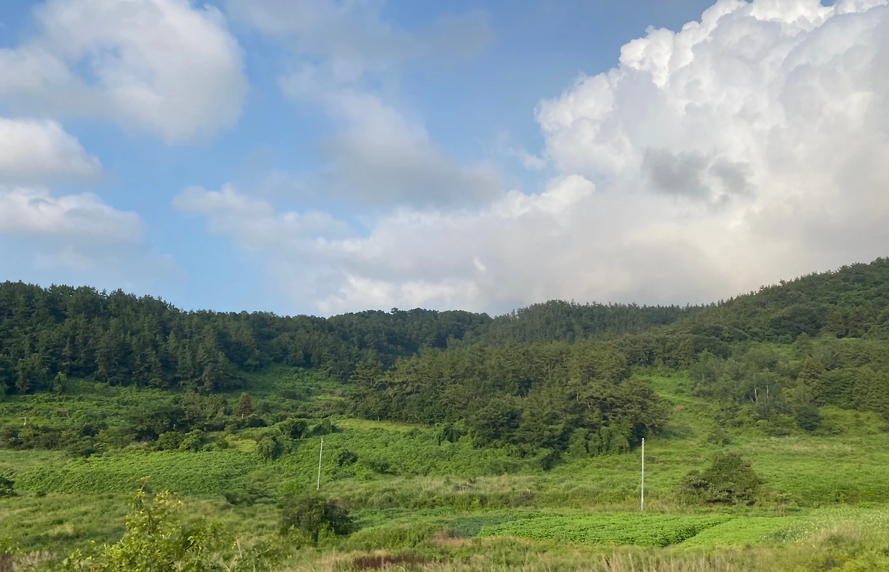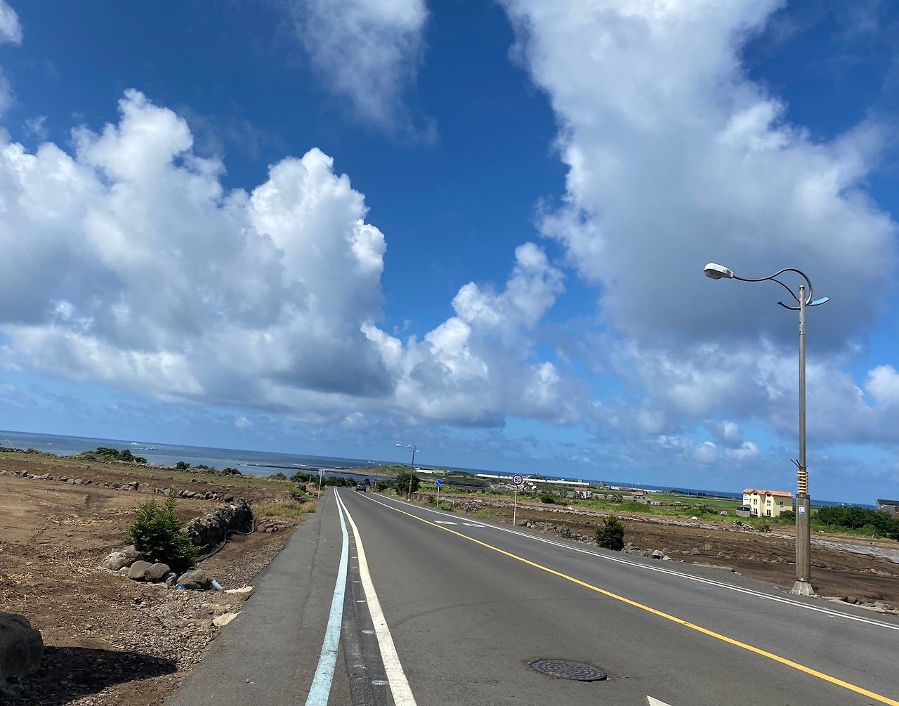 이번 제주 자전거 종주를 완주하는데 가장 큰 기쁨이자 고마웠던 것은 바로 눈앞에 펼쳐진 풍광, 이 풍광을 만들어준 날씨에 있었다. 자주는 아니지만 몇 차례 제주 여행을 왔을 때 이 정도로 체류 기간 내내 좋았던 적은 없었다. 날이 좋았다가도 비가 오거나 바람이 엄청 불어서 제주도는 하루에도 사계절이 있구나를 몸소 깨달아서 사실 날씨 운을 크게 기대하지 않았다. 비가 조금만 와도 탈 수 있으니 많이 오래 내리지는 말기를 하는 기대 아닌 기대를 가졌었는데 일주일 내내 첫날의 어메이징 판타스틱 써머 페스티벌 느낌 그대로 이어주었다. (마지막 날 서울로 오는 길은 그야말로 대-폭우 속에서 몸과 마음이 홀딱 젖었지만 ;;)