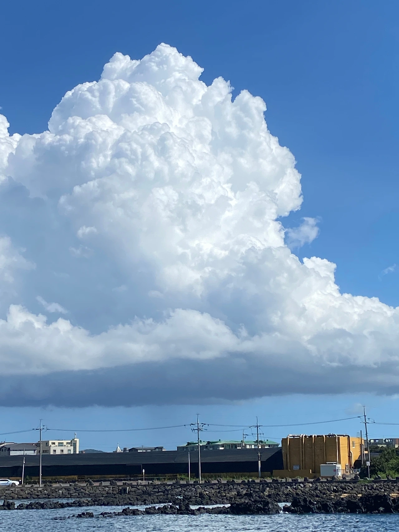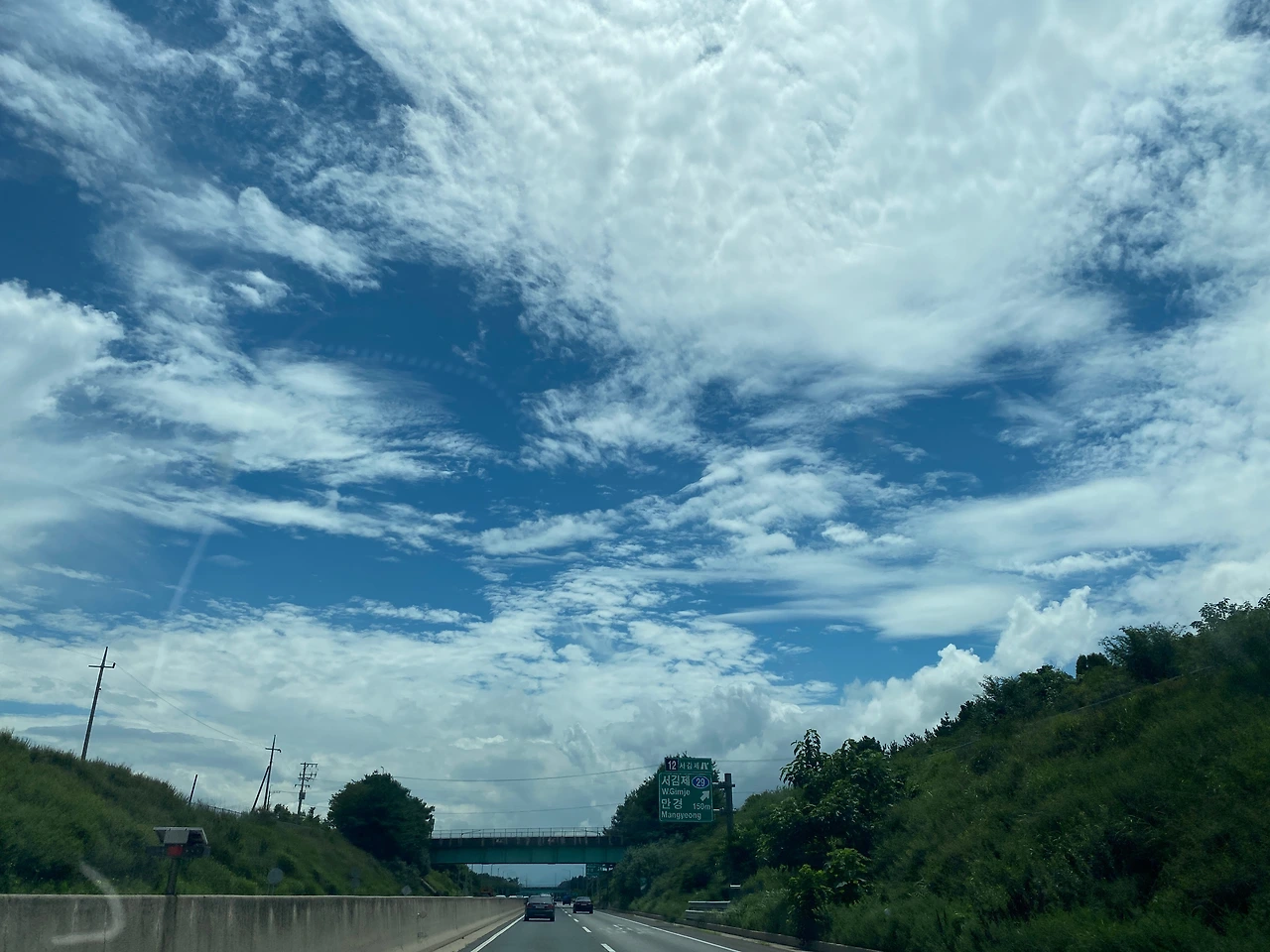 추자도를 지나고 1시간 정도 지났으려나 드디어 제주항 도착! 선원들이 바삐 움직이기 시작하고 각종 안내방송이 나왔다. 차를 갖고 온 사람은 차량 선적실로 내려오라고 하여 친구와 나는 흰둥이에 타서 대기하다 선원이 주는 신호에 맞춰 배에서 나왔다. 우리를 맞이하는 이 날의 날씨가 가히 어메이징, 판타스틱 써머 페스티벌 느낌이었다. 배에서 내리는 사람들은 (나포함) 제주 도착을 기념하는 하늘 사진을 엄청 찍었다.