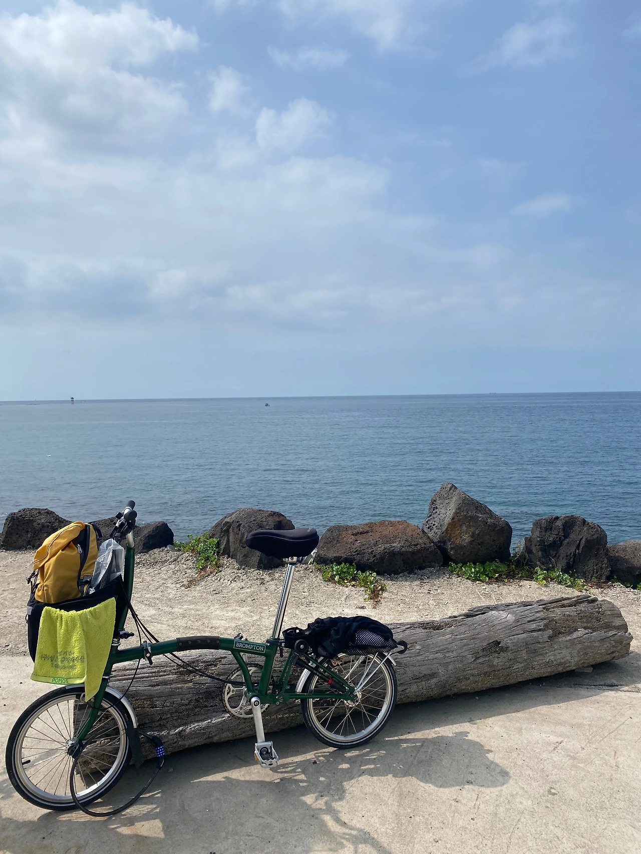 어찌 보면 준비기간은 꽤 길었다. 자전거로 제주도를 돌면서 인적 없는 해변에서 수영도 하는 환상(!)적인 꿈을 꾼 마음의 준비 시기부터 거슬러 올라가면 말이다. 그 꿈을 꾸게 된 시기는 정확히 기억나지 않지만 5년은 더 된 지인들과의 수다에서 한 지인이 자신은 휴가 기간을 좀 길게 잡고 제주도에서 자전거를 타며 수영도 하는 시간이 너무 좋다는 얘기가 내 환상의 시작임은 분명히 기억난다. 그 이후 '언젠가'라는 기약 없는 부사에 기대며 구체적인 결심의 마음을 점점 끌어올리고 있다가 작년, 브롬톤 자전거를 사야겠다는 마음을 먹고 무려 내 첫 중고차 가격보다 비싼 자전거를 당근으로 구매하기에 이르렀다. 그리고 올여름 나의 자전거로 제주도 종주를 하겠다는 구체적인 다짐을 하고 실행에 옮겼다.