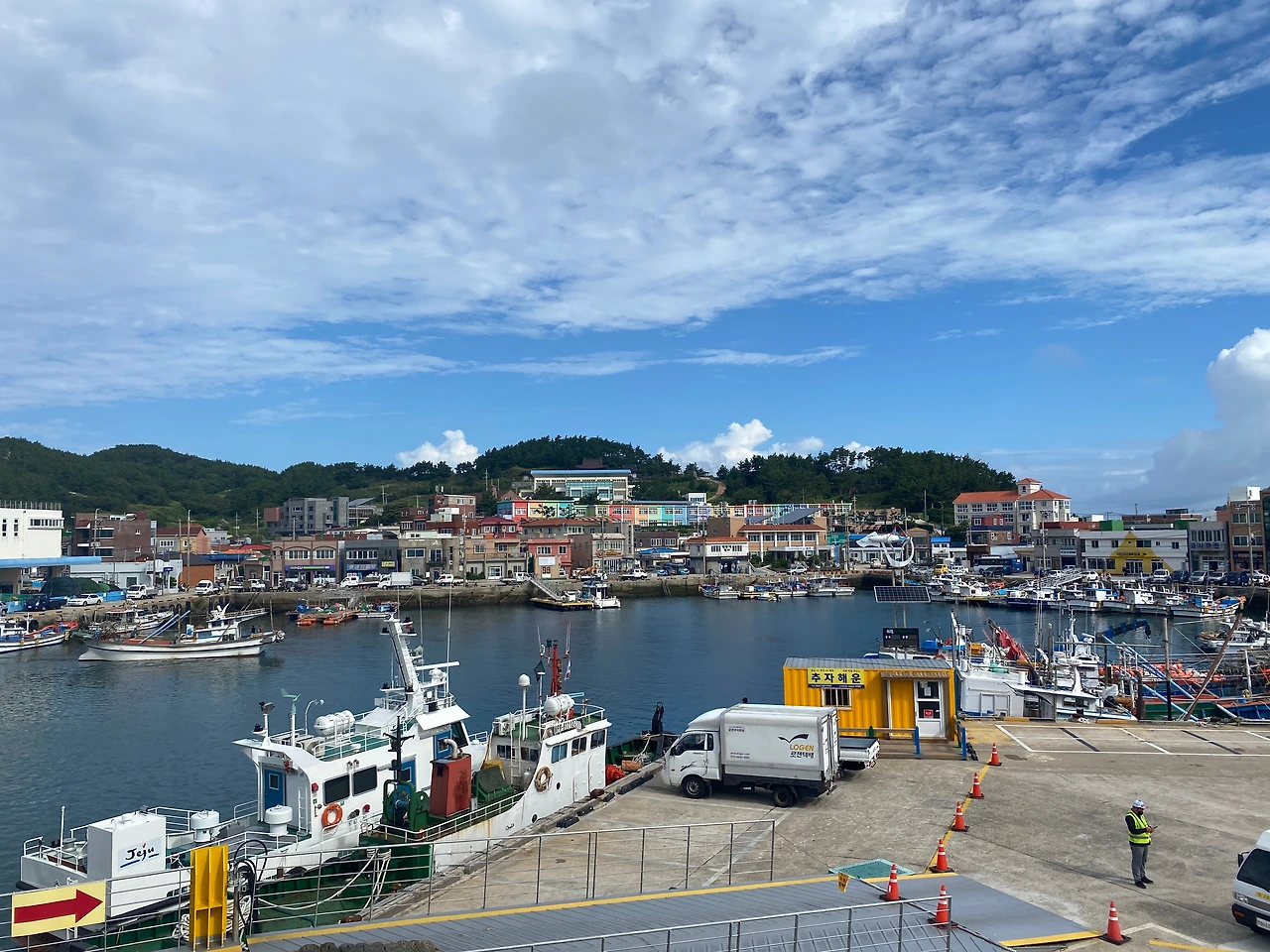 제주도로 가는 바닷길, 추자도를 경유하길래 객실에서 바깥으로 나가보았다. 추자도는 아주 작은 섬인데 옹기종기 마을이 귀엽게 모여있는 인상을 받았다. 사람보다 배가 많은 느낌이랄까. 낚시하러 사람들이 내린 거 보니 뭔가 포인트들이 많은 곳일 수도 있겠다. 섬에 작은 산이 있는데 등산로가 보였다. 지도 앱을 보니 폐교를 살려 캠핑장을 만들어놓은 것 같았다. 문득 낚시도 하고 캠핑도 하며 며칠을 보내면 재밌겠구나 싶었다. 또 그 언젠가 여기를 오게 될 수도 있으려나 ^^;