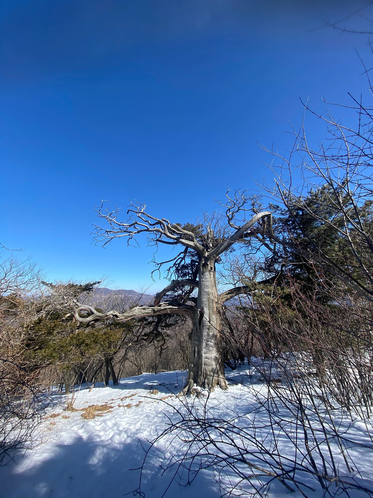 부드러운 겨울산의 능선과 나무, 눈을 원없이 보며, 새소리와 내 발자국 소리에 집중한 덕분에 내가 보낸 슬픈 이번 겨울을 밝게 보내줄 수 있을 것 같다.