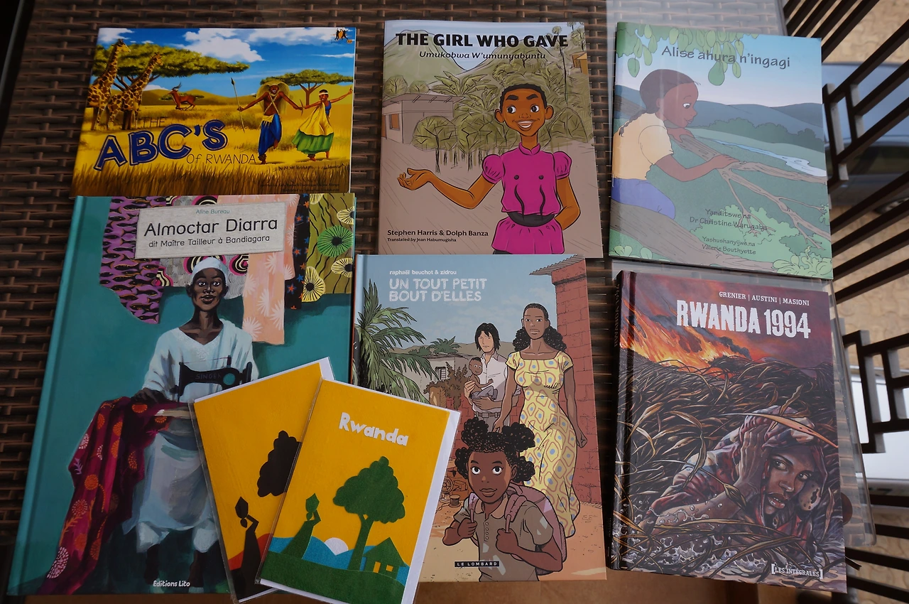 서점을 한 바퀴 돌아보고 직원에게 가서 르완다 작가의 책을 추천해 달라고 했다. 당황해하면서도 친절하게 잘 설명해 주었다. 덕분에 르완다 동화책, 르완다 내전과 할레에 대한 그래픽 노블 책, 이쁜 프랑스 동화책까지 해서 총 6권을 구입하였다.