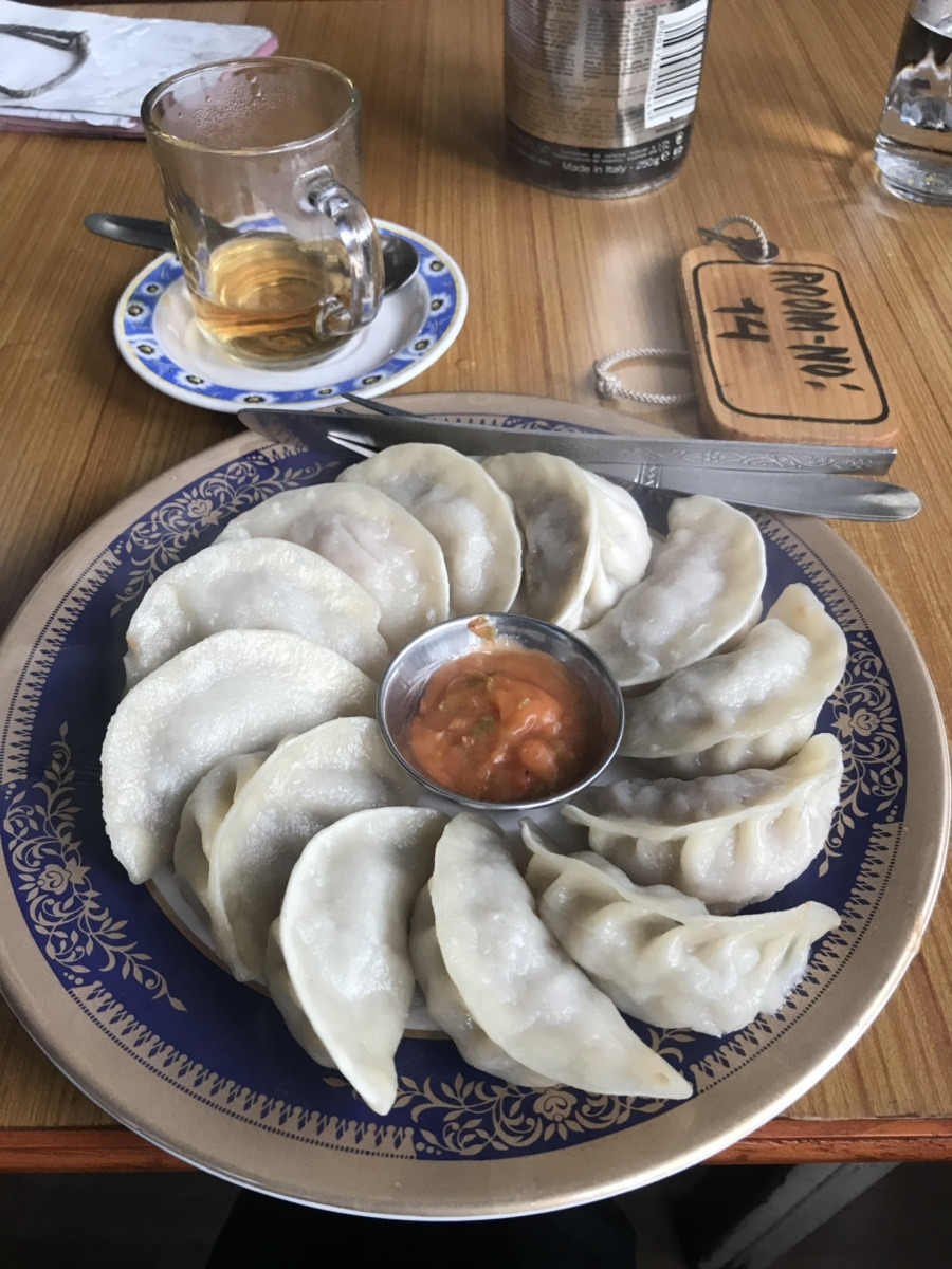 블랙 티 (small pot-250루피)와 네팔식 전통 만두 ‘모모(500 루피)를 시켰다.