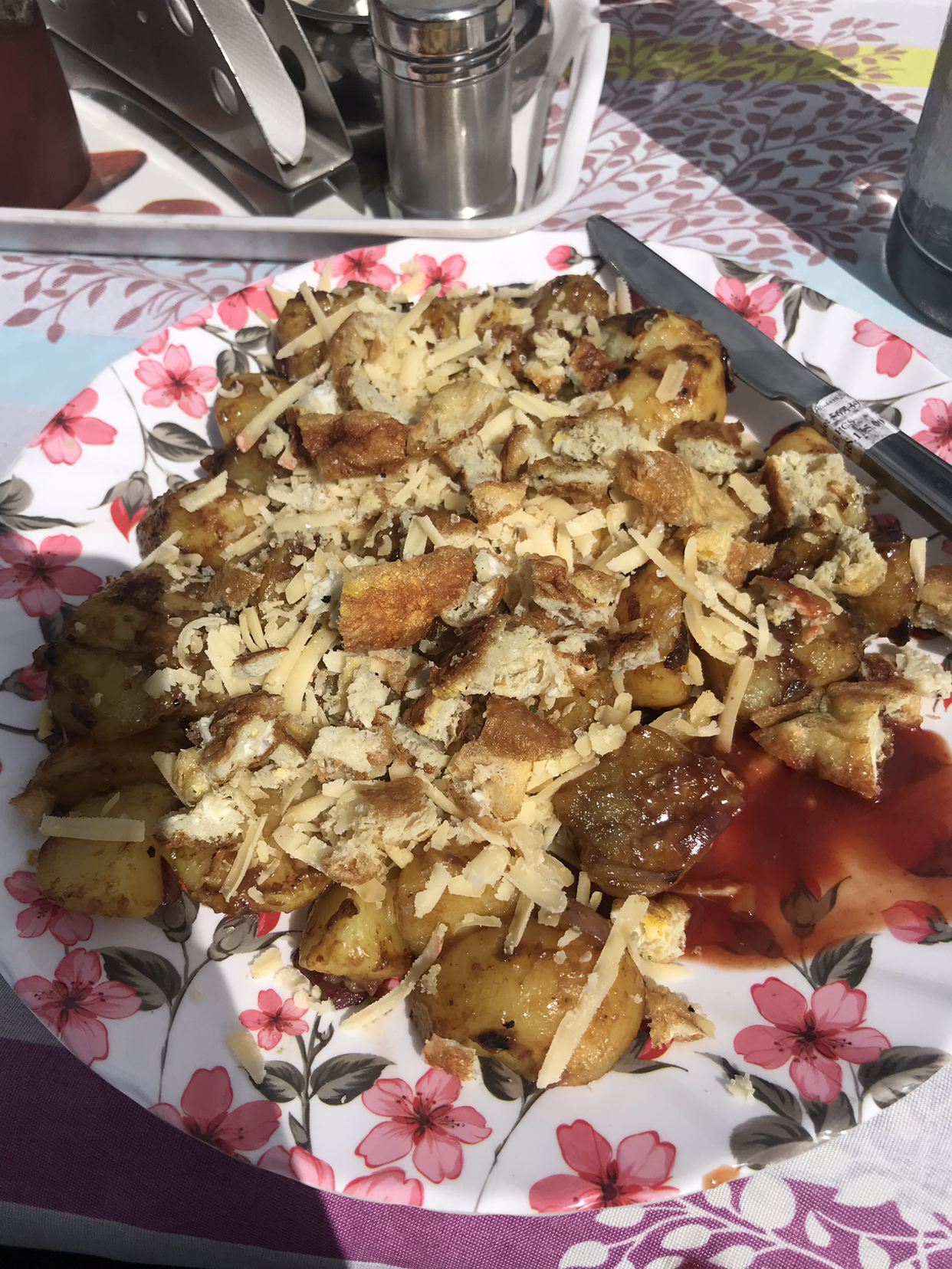 아침을 오믈렛 하나 먹었기에 상당히 배고픈 상태였고, 무얼 주문할까 고민하다 며칠 전 호주 친구 중 한 명이 감자튀김 위에 치즈가 올려진 음식을 맛있게 먹었던 게 생각나서 주문했다.
