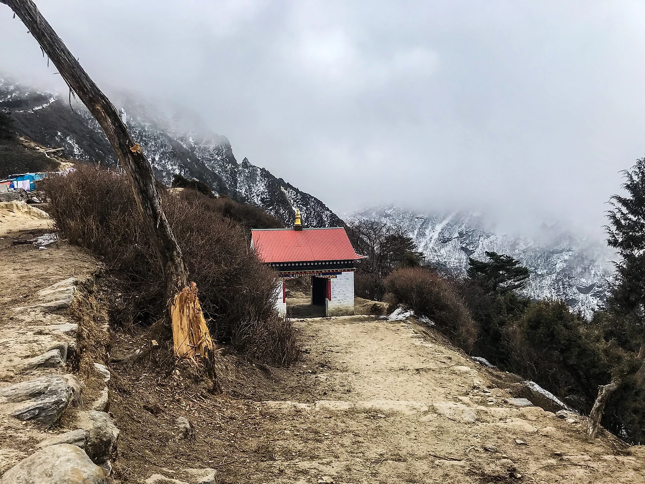 빙판길로 된 오르막이었는데 2보 앞으로 가면 1보 뒤로 미끄러져 내려왔다. 그나마 거의 꼭대기쯤에는 '텡보체'에 있는 큰 곰파에서 나온 스님분들이 빙판 위에 흙을 흩뿌리고 계셨고 그 덕에 마지막 20분 정도 올라올 때는 비교적 쉽게 올라올 수 있었다.