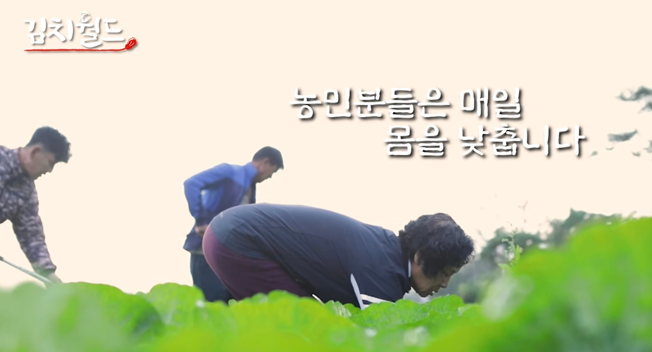 농민분들이 김치를 만들기 위해 사용할 배추를 수확하는 모습에서 나온,