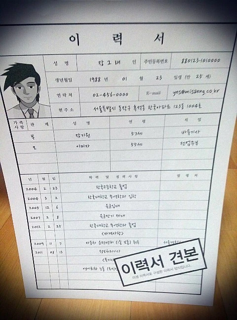 그렇기에 체계적으로 작성한 이력서는 준비되어 있지 않았습니다.