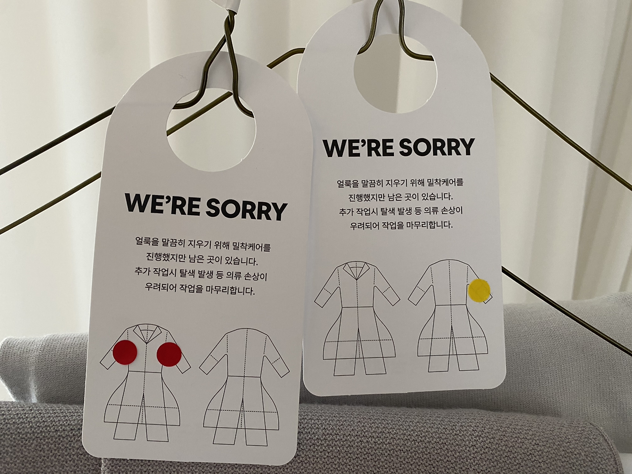 세탁물에 붙어있는 안내문은 저의 마음을 표현하는 것 같았습니다.