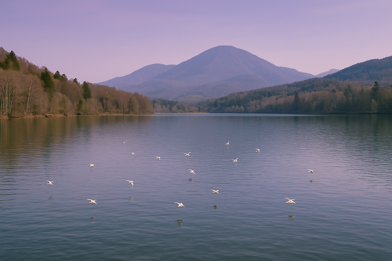무리 지은 하얀 새들이 호수 위를 누빈다. 가벼운 날갯짓으로 부드럽게 공기를 가른다. 한 마리가 날개를 퍼덕이더니 속도를 줄여 물 위에 내려앉는다. 물결이 둥글게 퍼져 나간다.