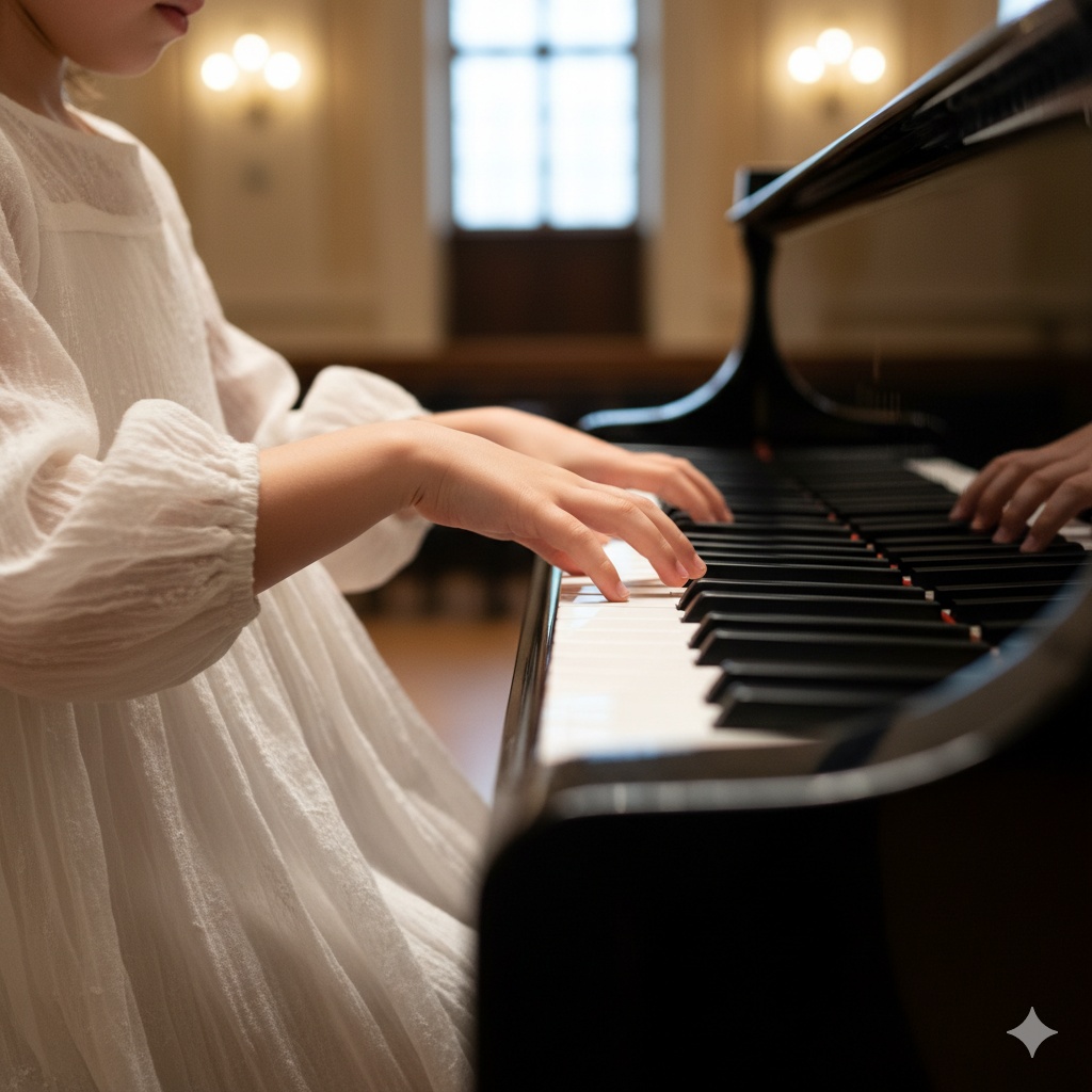 흰 드레스를 입고 머리에 커다란 리본을 꽂은 꼬마가 발끝에 간신히 닿는 페달을 밟으며 피아노를 연주하고 있었다. 설이는 고개를 천천히 끄덕였다.