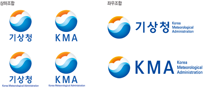 한국에서 많이 이용하는 태극마크에서 조금 변형을 한 모양인데, 진취적은 대한민국을 상징한다고 한다. 마크뿐만 아니라 글꼴도 통일시켰다. 깔끔한 느낌이 한 기관의 마크만 보자면 좋은데, 다양한 기관이 섞여 있는 페이지를 볼 때면 기상청을 찾는데 한참 걸리기도 한다.