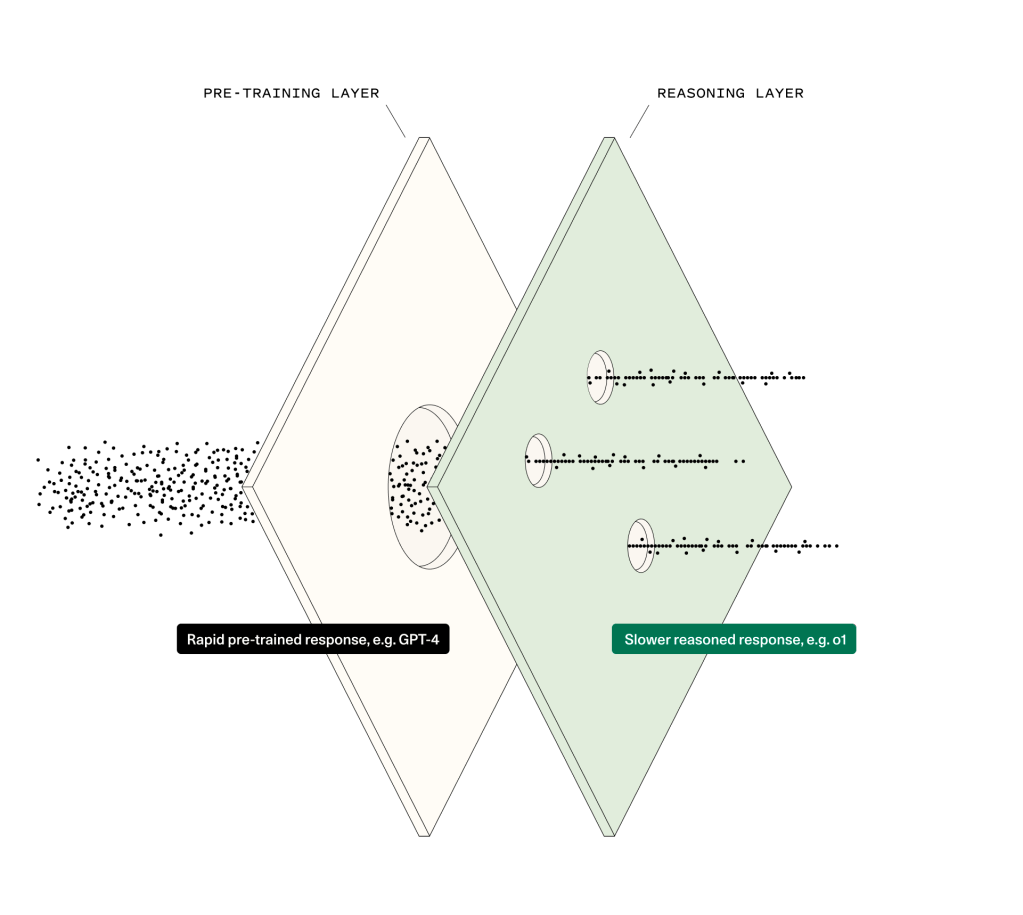 사전 학습된 본능적 응답(pre-trained instinctual response, “시스템 1”)에서 더 깊고 신중한 추론(deliberate reasoning, “시스템 2”)으로 도약하는 것이 AI의 다음 과제다. 모델이 단순히 많은 지식을 아는 것만으로는 충분하지 않다. 실시간으로, 멈춰서 평가하고 추론해야 한다.