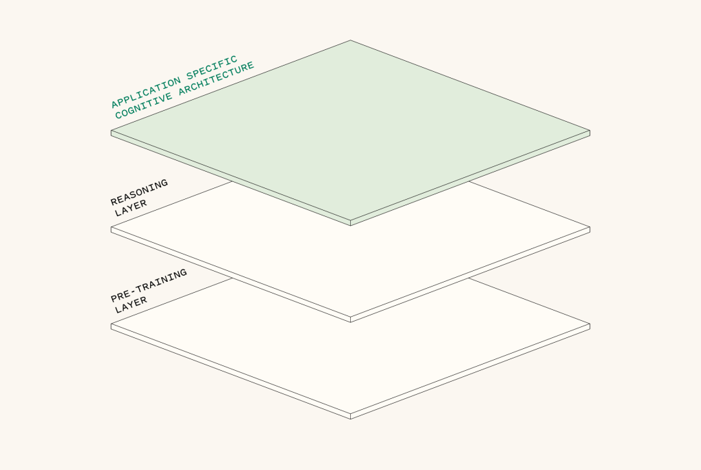 이처럼 LLM(Large Language Model) 시장이 안정화되면서 이제 다음 단계가 부상하고 있다. "시스템 2" 사고를 중심으로 한 추론 레이어(Reasoning layer)가 바로 그것이다. 알파고와 같은 모델에서 영감을 얻은 이 추론 레이어는 AI 시스템이 단순한 패턴 매칭을 넘어서, 신중한 추론과 문제 해결, 인지적 작업을 수행할 수 있도록 한다. 그리고 새로운 인지 아키텍처(Cognitive architecture)와 사용자 인터페이스는 이러한 추론 능력을 사용자에게 전달하여 상호작용할 수 있도록 하는 방식을 만들어내고 있다.