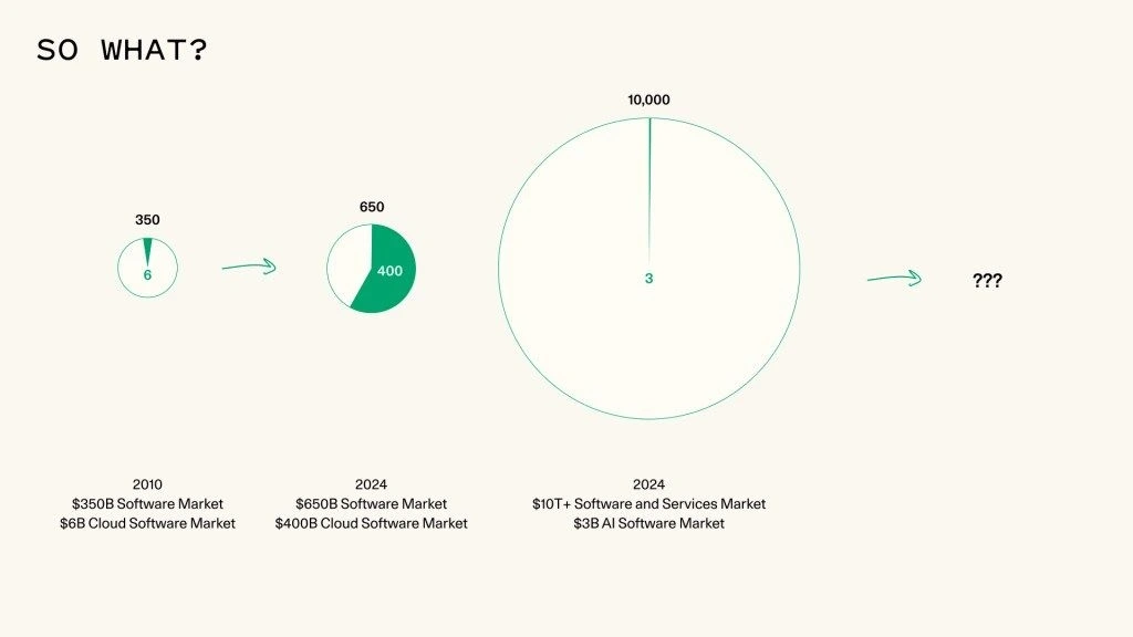 AI도 이와 유사한 전환일까? 어쩌면 AI의 기회는 일/노동/작업을 판매하는 것과 소프트웨어를 대체하는 것 둘 다일 수 있지 않을까?