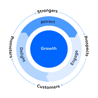 이 과정에서 전혀 관심 없던 사람(Stranger)이 잠재 고객(Prospects)이 되고, 잠재 고객은 제품을 구매하여 고객(Customers)이 되며, 구매한 제품이나 서비스에 크게 만족한다면 이 고객이 결국 마케터이자 영업사원(Promoter)이 된다.