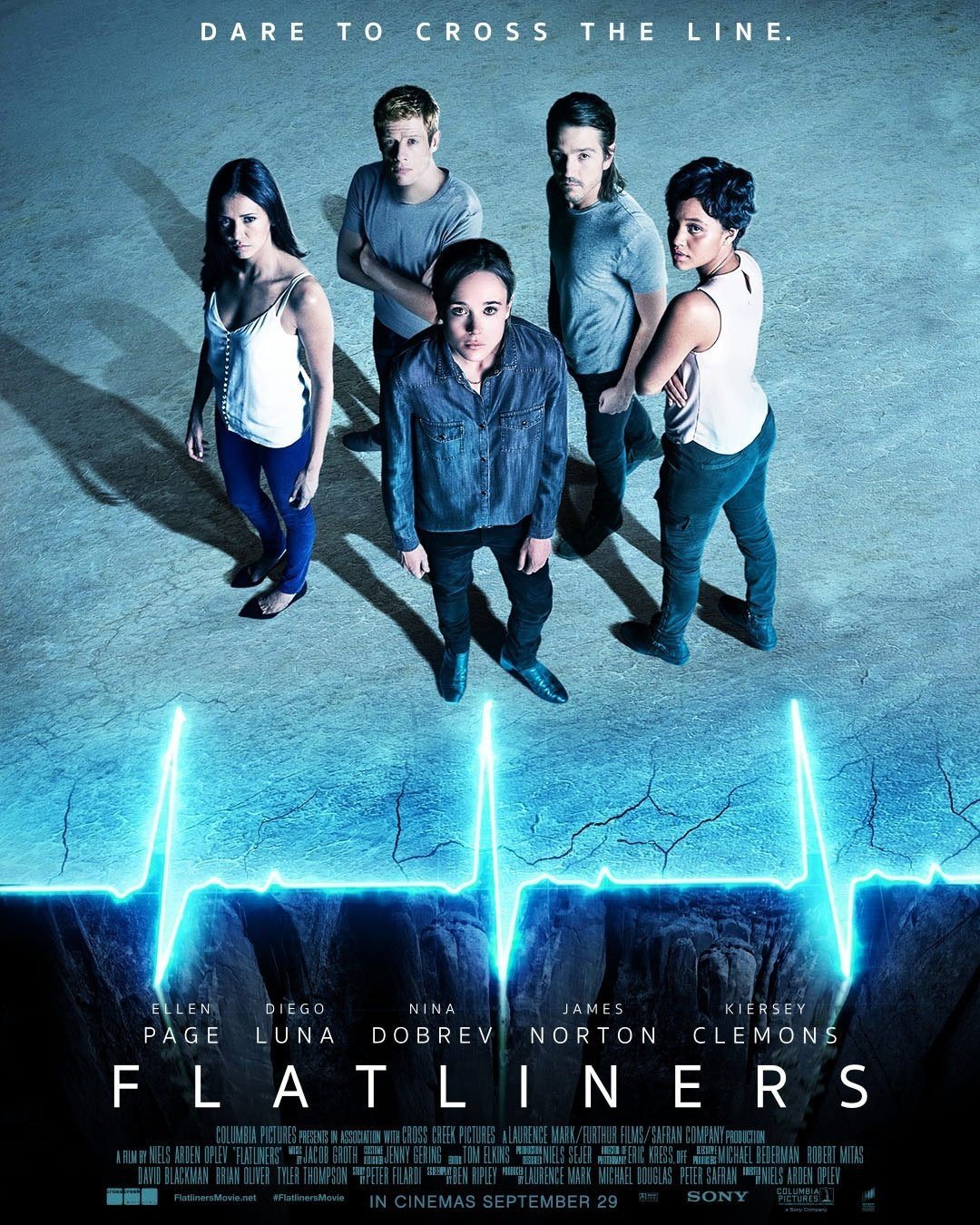 <유혹의 선(1990)>이라는 영화의 리메이크 영화다. 동네마다 비디오 가게가 흥하던 시절, 비디오 가게에서 나오는 신작 출시 및 영화 소개 광고책자를 통해 이 영화의 포스터를 본일을 기억해 냈다. 푸르고 창백했던 포스터. 지금까지도 기억하는 걸 보면 꽤 멋지다고 생각했나 보다. 결국 못 봤지만, 보고 싶어 했었던 것도 같다. 하지만, 2017년판 <플랫라이너>를 본 후 1990년 판을 찾아볼 일은 아마 없을 것 같다. 보고 싶고, 봐야 할 영회는 많고 그러다 보면 이 영화는 순위에서 한없이 밀리게 되리라.