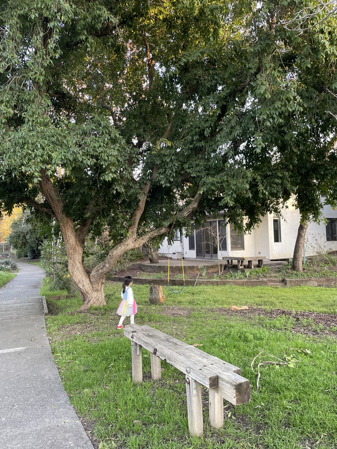 Village Homes 중앙 공원 옆의 한 집의 등나무는 연보라색 꽃송이가 포도처럼 주렁주렁 매달려 있었다. 바람이 불면 꽃잎이 하나둘 떨어졌고, 엘리는 그 아래서 빙글빙글 돌며 떨어지는 꽃잎을 애써 잡으려고 뛰어다녔다.