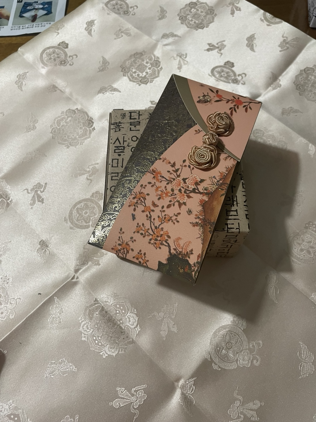 한지로 만든 작은 보석함을 꺼냈다. 할머니는 조심스럽게 뚜껑을 열어보더니, 안에 있는 전통 문양을 손가락으로 쓸었다.